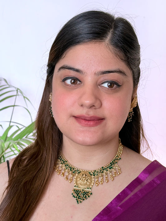 Golden Bhargavi Temple Jewelry Set