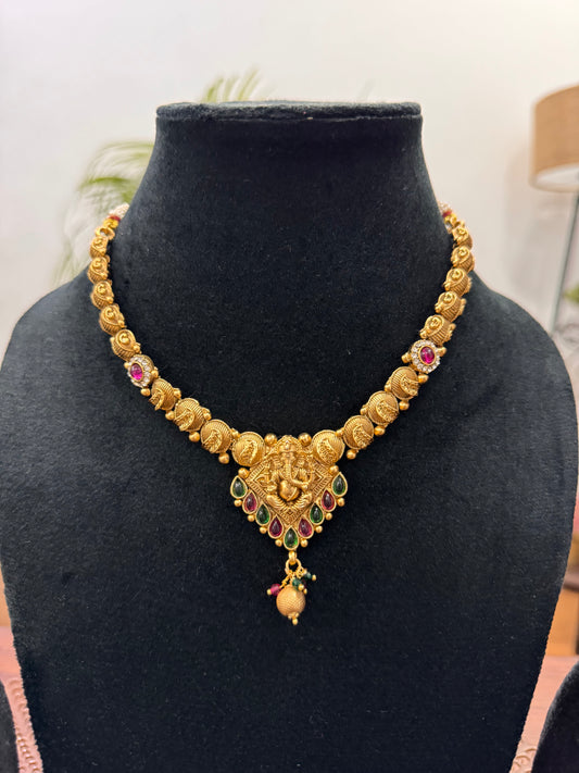 Golden Maheshwari Temple Jewelry Set